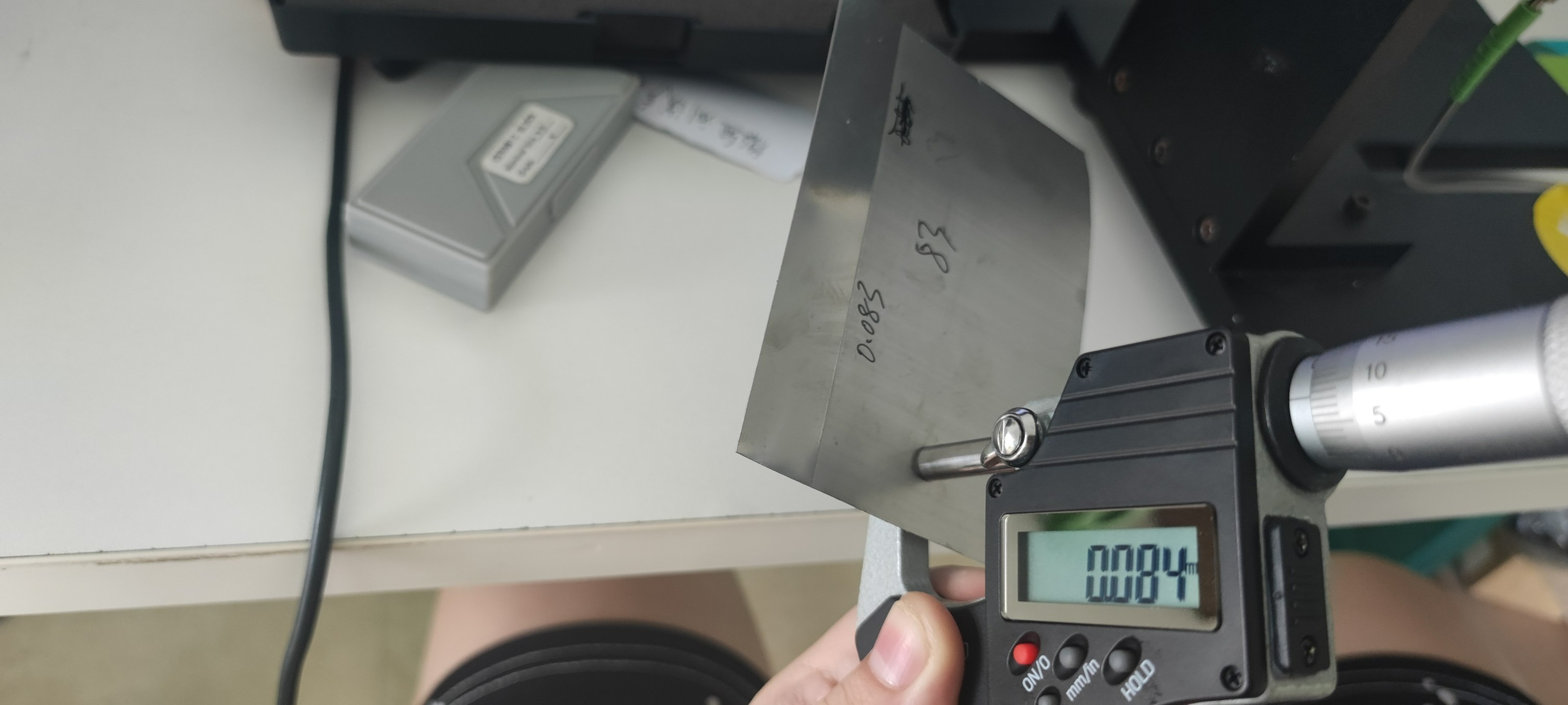 为了保证精度,首先先用千分尺进行测量,得出相应的厚度数据,在选择合适的侧头,根据结果,我们现在立仪科技H4UO控制器搭配D27A20侧头
